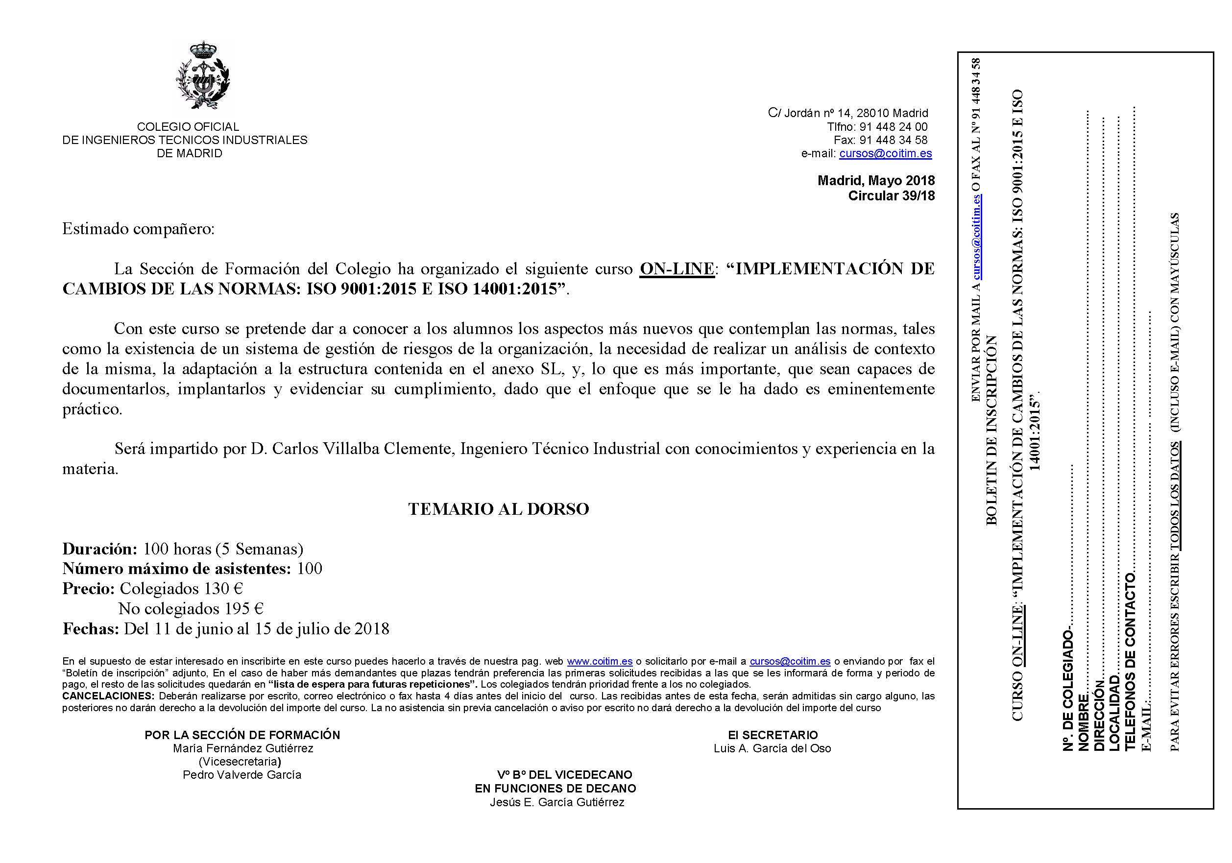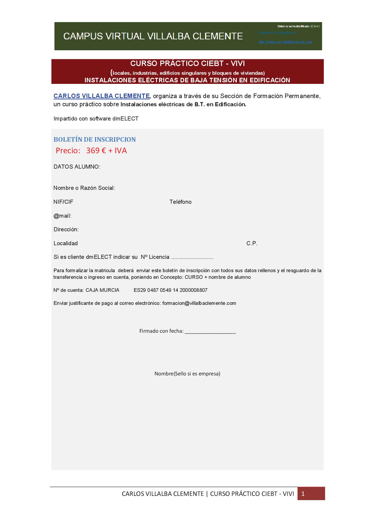 Se entregará a los alumnos documentación técnica del temario del curso en formato pdf , dwg, audiovisual. NOTA: La matrícula no será considerada válida hasta haber abonado el importe de la misma. |