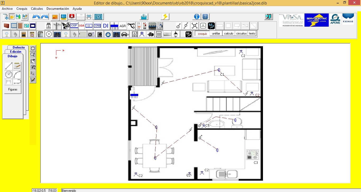 Se pueden introducir líneas de circuitos, elementos de suministro, derivación, maniobra y cargas finales para su posterior impresión en un plano. Esta funcionalidad permite una total libertad a la hora de realizar diseños y de introducir elementos, pudiendo modificar su posición y orientación en todo momento con las herramientas de edición.